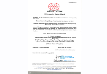 At present, China-funded Guoye Peony Industry Group Co., Ltd. has 21,760 Mu oil peony planting base (Heyang Fang Town Base, Heyang Wang Village Base, Pucheng Chunlin Town Base), nearly 1,000 Mu seed cultivation base for the cultivation and improvement of high-quality varieties, self-sufficient and external supply and 68 Mu deep processing base; the organic certification of its EU standards and national standards is in progress.