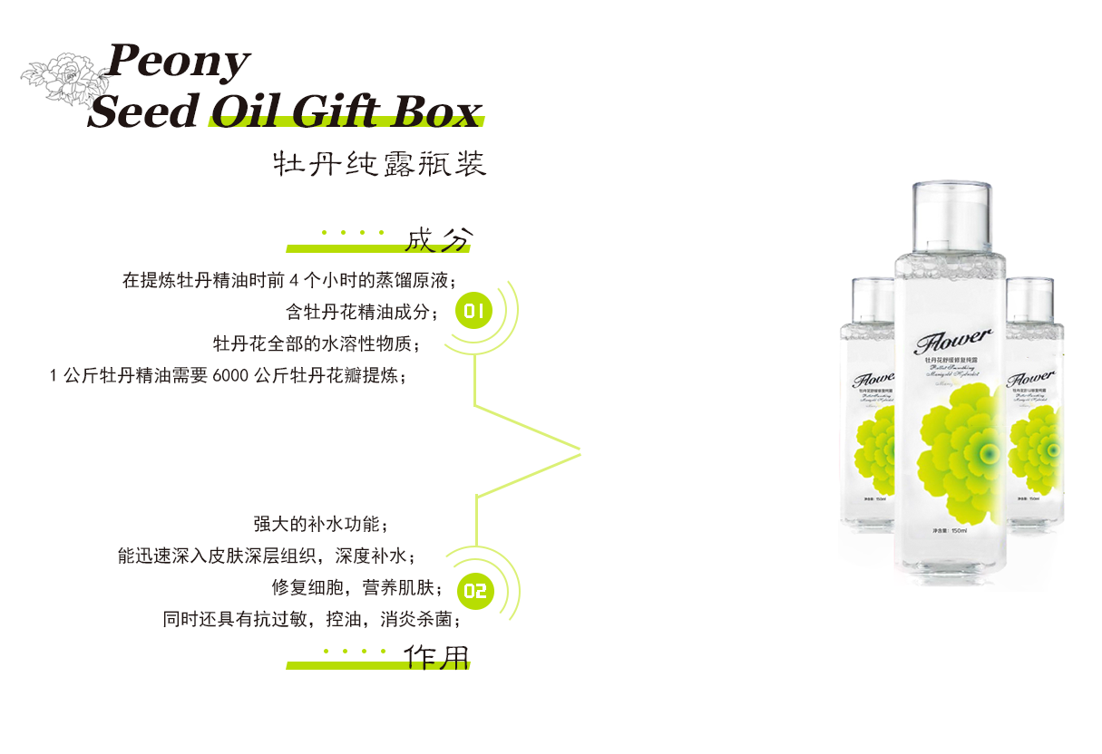 牡丹純露分子細(xì)小,能迅速滲透到血管和淋巴,幫助血液循環(huán),將滯留在體內(nèi)的二氧化碳及沉積的物質(zhì)代謝出來,其抗菌和免疫特性,促進(jìn)皮膚細(xì)胞修復(fù)與再生,令肌膚光滑細(xì)膩,白皙。