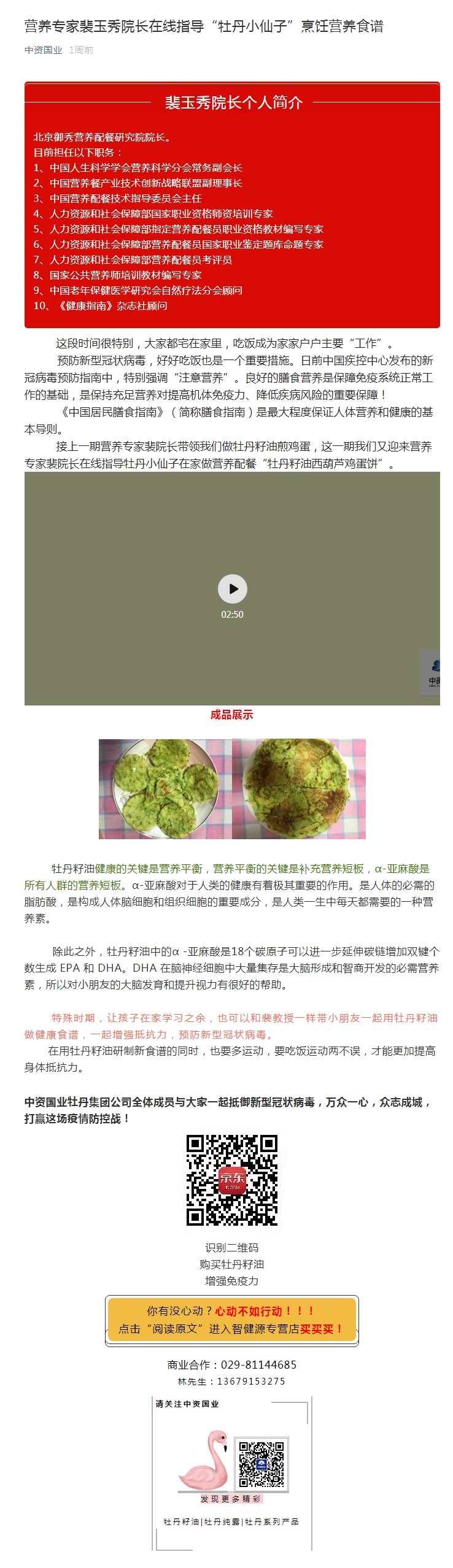 營養(yǎng)專家裴玉秀院長在線指導“牡丹小仙子”烹飪營養(yǎng)食譜