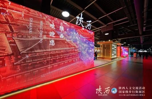陜西人文交流活動步行街和會客廳展區(qū)以“三秦腔調(diào)”為創(chuàng)意主題,衍生出“地標(biāo)建筑”“自然風(fēng)光”“老字號和非遺傳承”等篇章。展區(qū)外立面采用全景冰屏動態(tài)視頻演繹,旨在展現(xiàn)陜西地域特色和厚重歷史文化。
