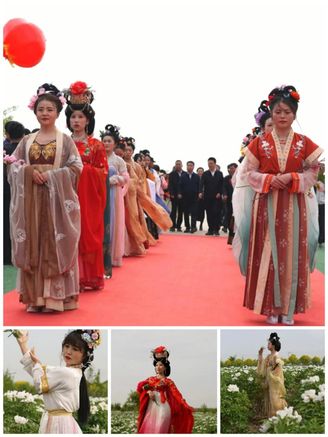 身著漢服,各色花神紛紛登場,與牡丹花海相得益彰,拉開了揭牌儀式的帷幕。
