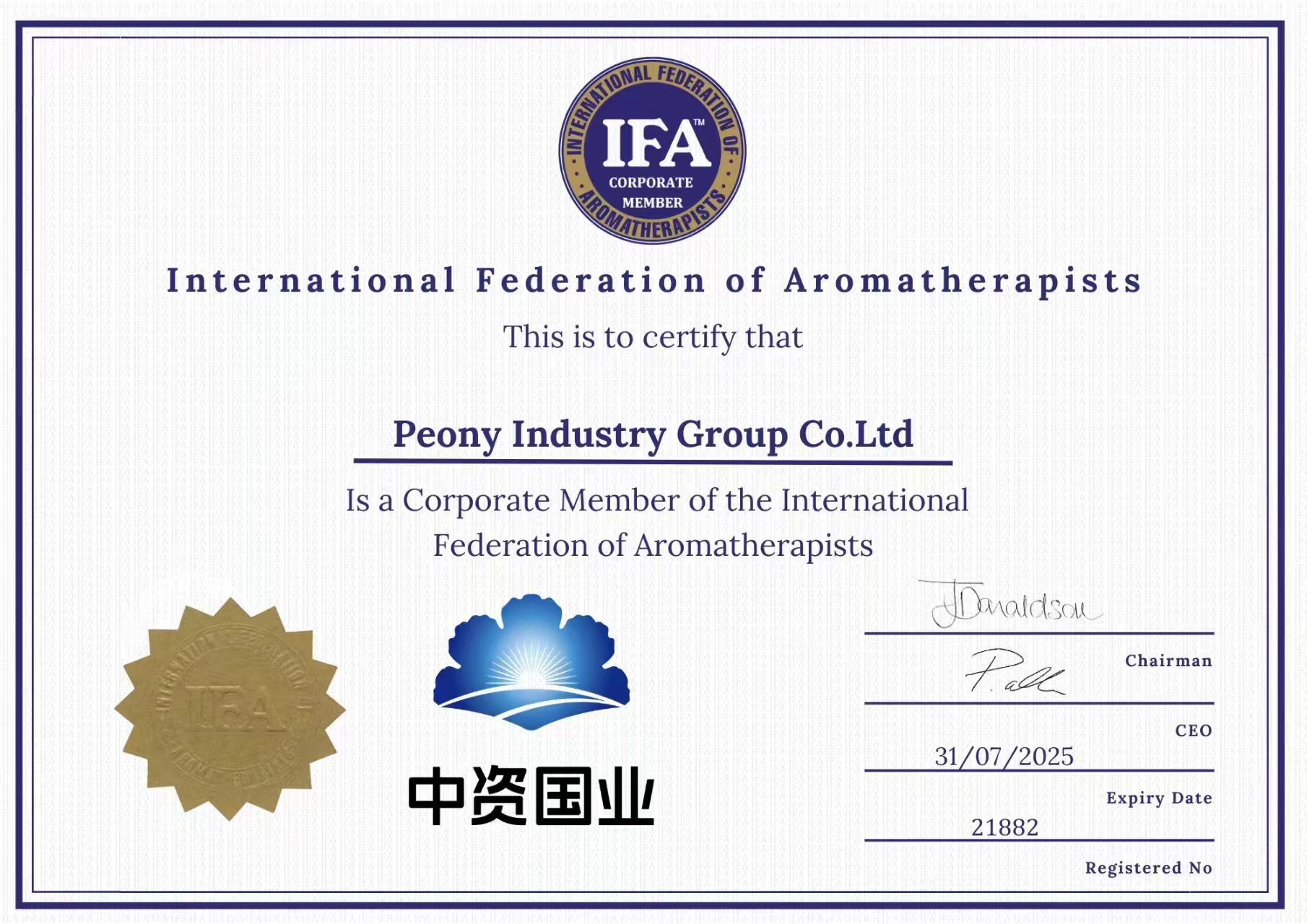 中資國業(yè)亦取得了擁有近40年歷史的芳療行業(yè)權(quán)威機(jī)構(gòu)——IFA國際芳療的認(rèn)可,成為IFA國際芳療企業(yè)會(huì)員,象征著在國際上開出屬于中國民族的一朵花。