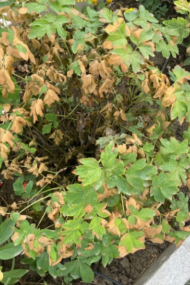 (缺肥干枯的牡丹葉)