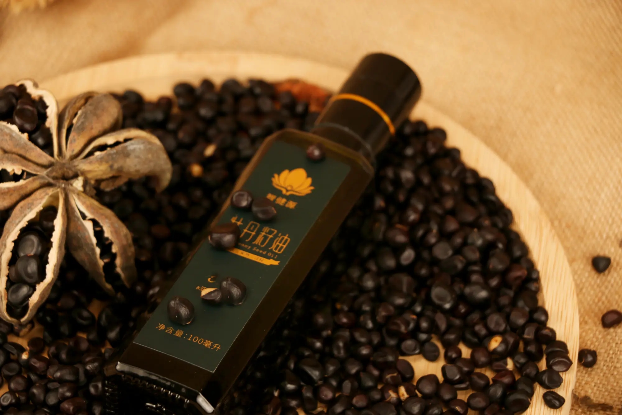 基地種植的牡丹品種,經(jīng)過(guò)多次榨油實(shí)驗(yàn),深入研究,最終確認(rèn)為“鳳丹牡丹”。鳳丹籽黝黑飽滿(mǎn),其藥用保健價(jià)值在《神農(nóng)本草經(jīng)》《本草綱目》等典籍中均有記載,且含有植物Omega-3,能呵護(hù)心腦眼健康。