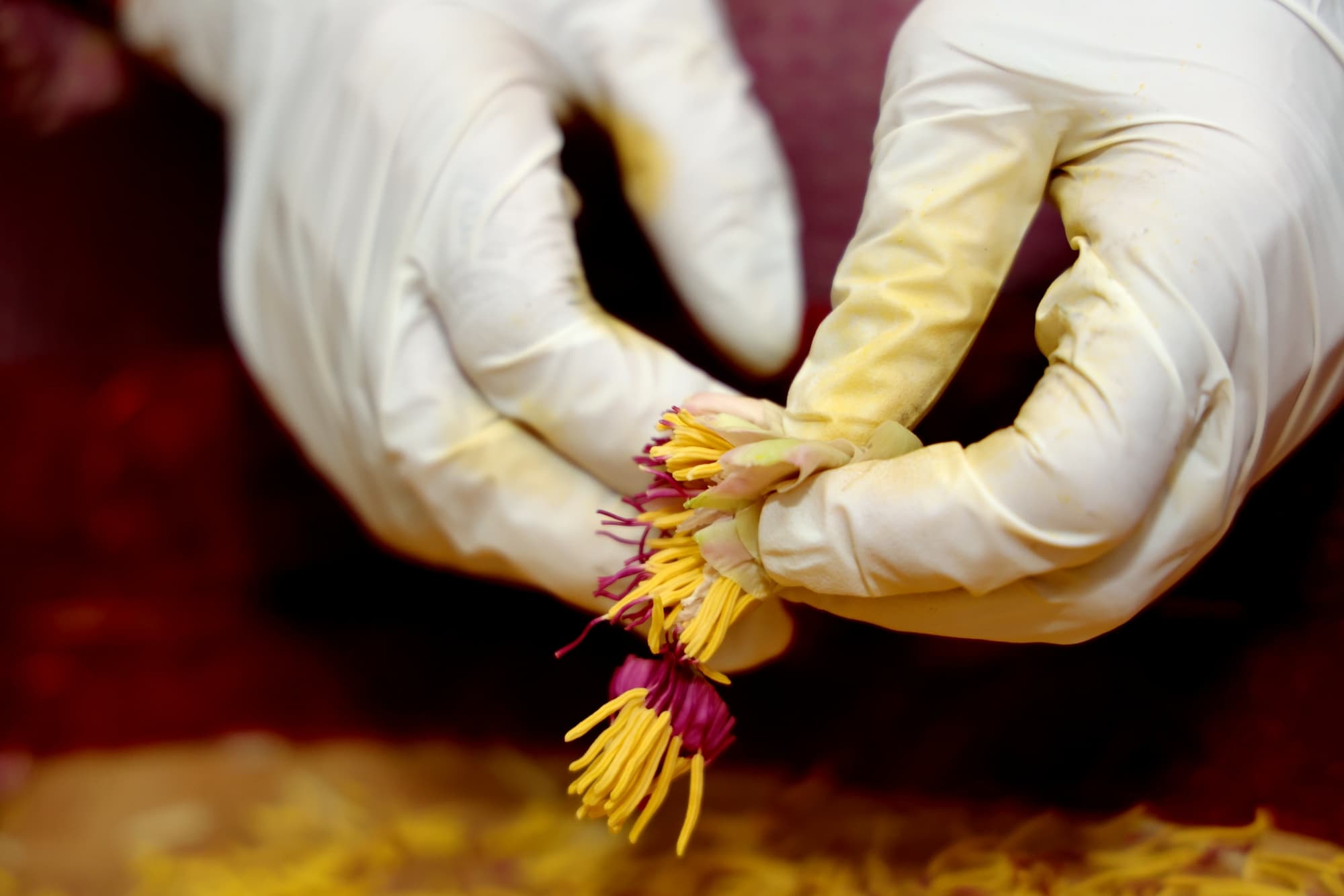 采摘后的花蕊采用微波低溫慢烘技術(shù)(40℃-55℃)制作,歷經(jīng)整整24小時(shí),確保每根花蕊均勻受熱、徹底烘干,牢牢鎖住活性營(yíng)養(yǎng)成分。