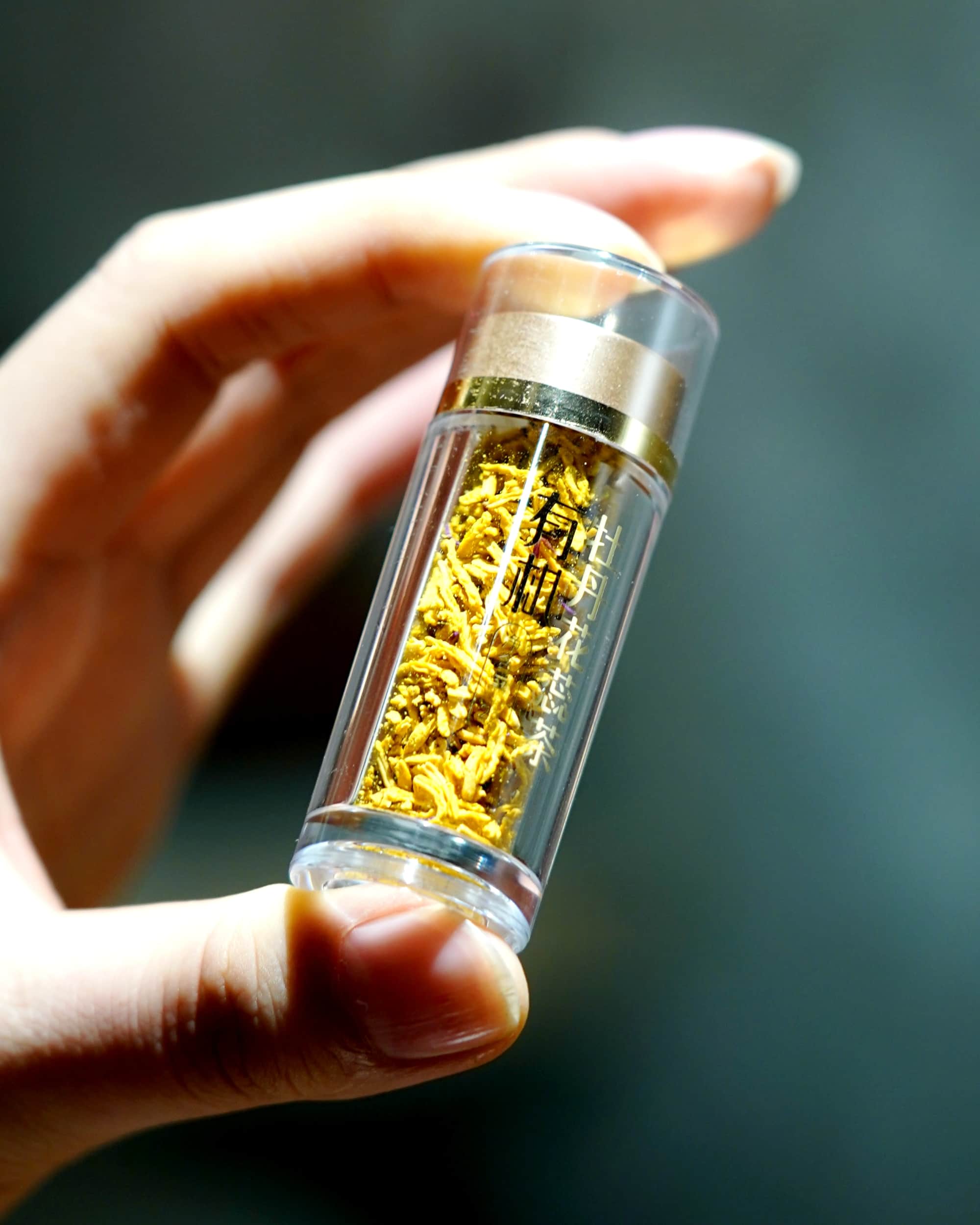 牡丹花蕊茶沖泡出來的茶湯色澤金黃、淡雅清香、醇味綿綿,顆顆立如小金條,有“黃金蕊茶”之稱,是茶中臻品。
